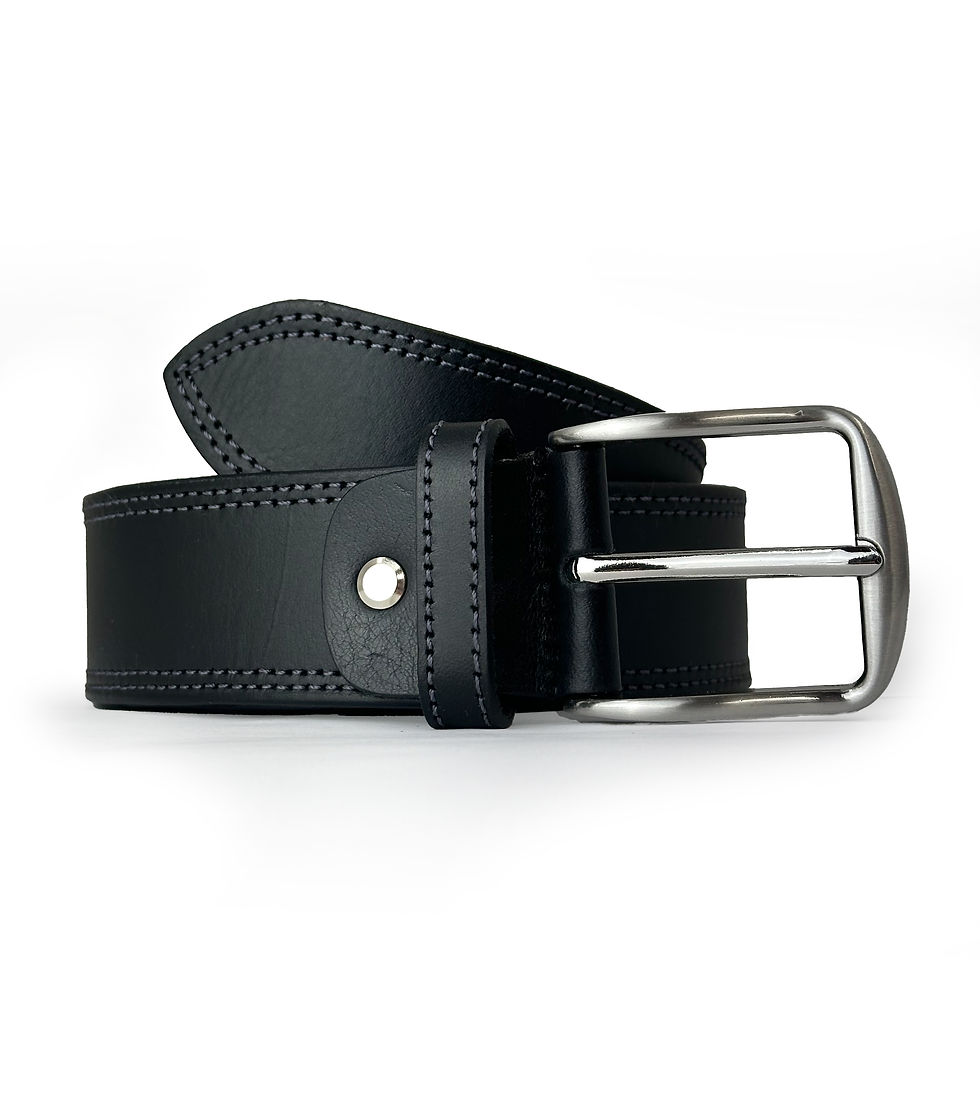 - Cinturón de hombre clásico económico de cuero con hebilla en acabado de niquel brillo.